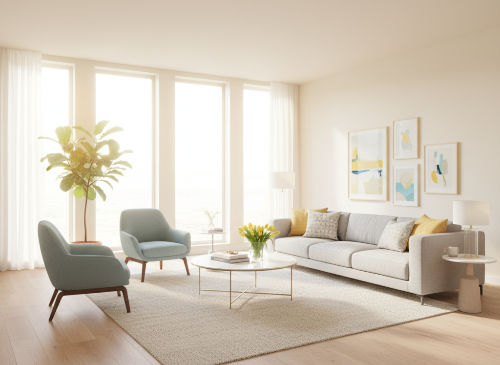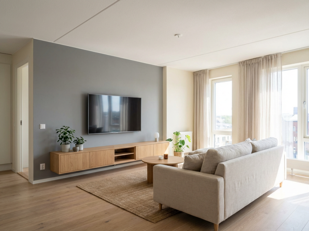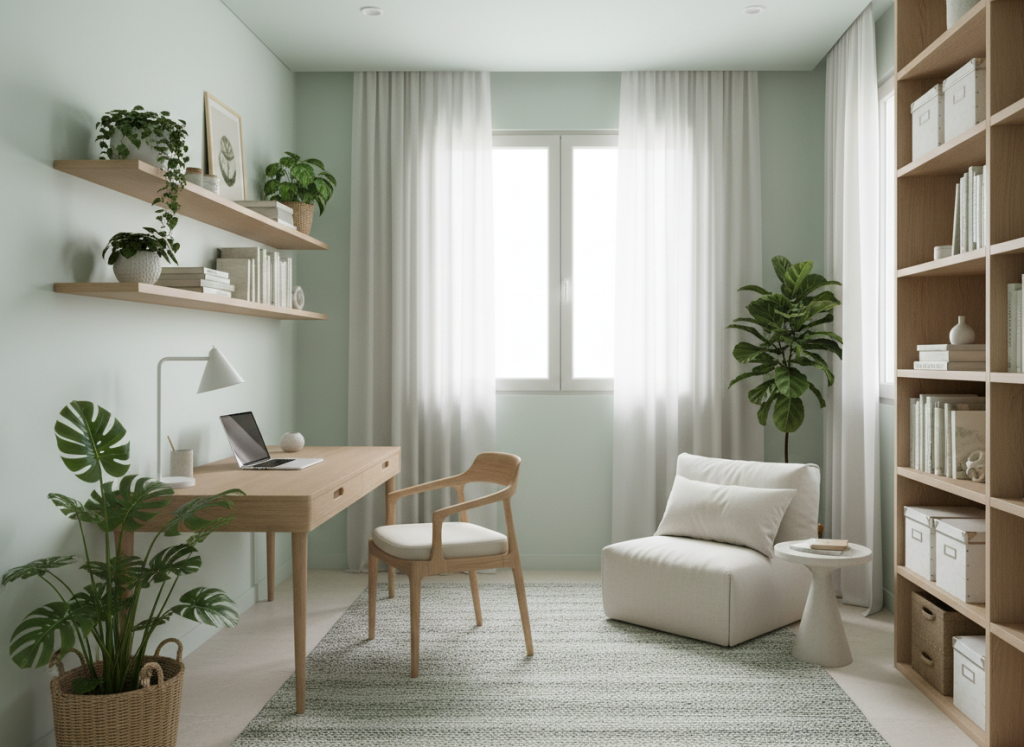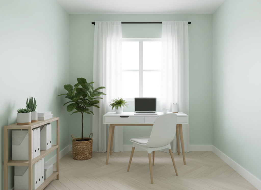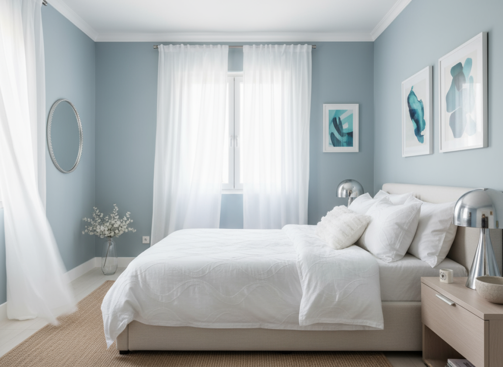 גוונים בהירים עם תת-טון קריר מצטיינים בכך שהם כמעט לא “מעמיסים” על הקיר — גם בחללים צפופים.