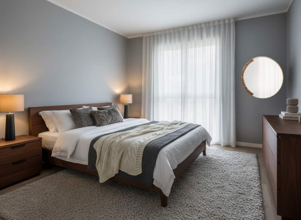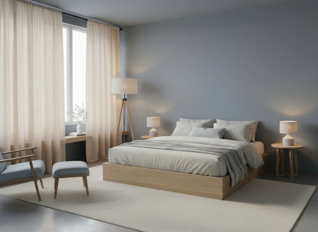 מתאים ל: חדרי שינה, חללים מינימליסטיים, שילובי אפור-כחול.