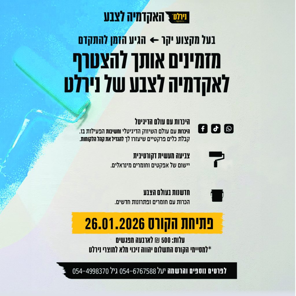 *הקורס ייערך בשעות אחה"צ במרכז נירלט דיזיין סנטר – רח' הלח"י 2 בני ברק