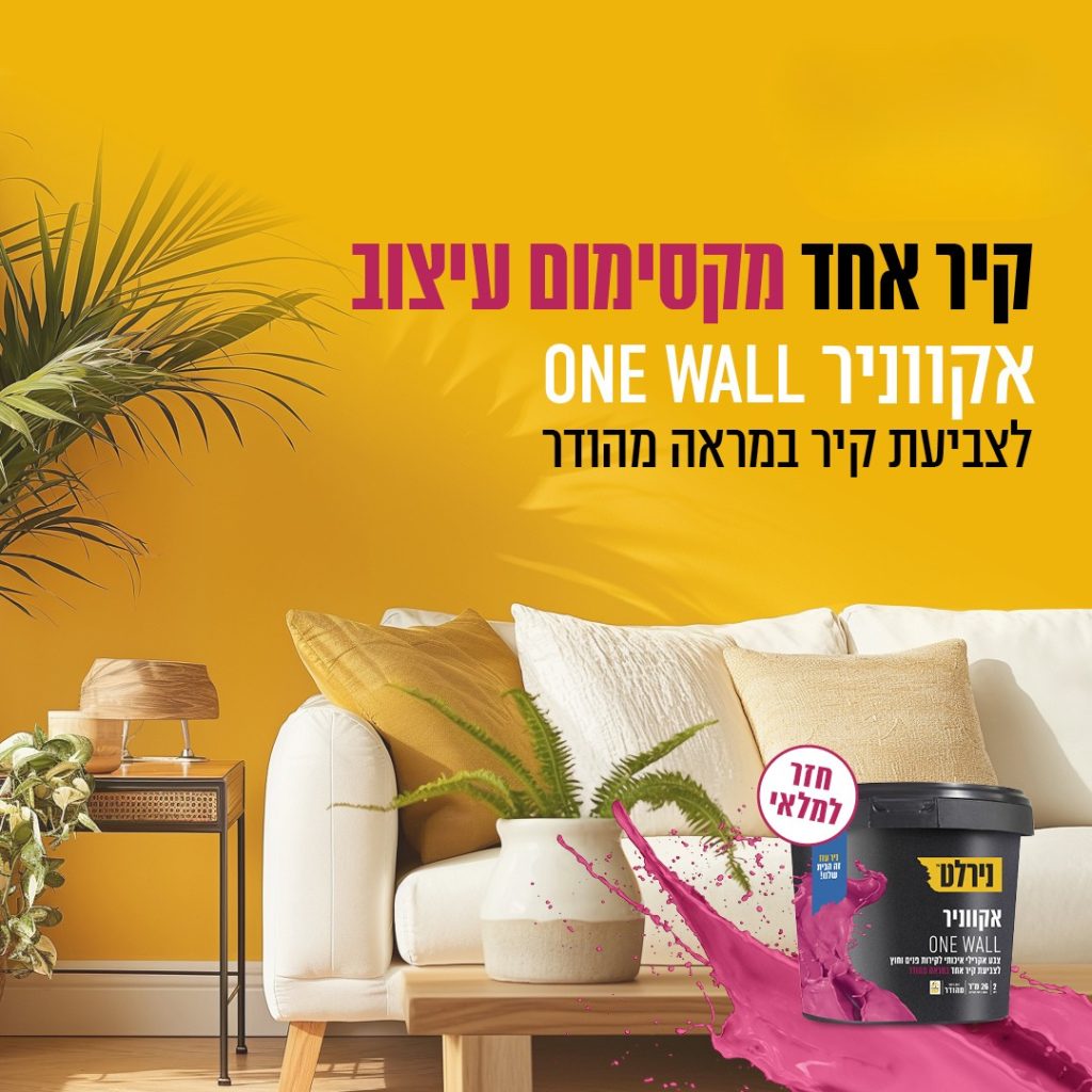 כדי ליצור קיר כוח מרשים באמת, צריך צבע שמתאים בדיוק למשימה. אקווניר ONE WALL של נירלט הוא צבע אקרילי על בסיס מים בגימור מט מהודר, שמאפשר לשדרג כל חלל באמצעות קיר אחד במהירות, בפשטות ועם תוצאה שמרגישים מיד.